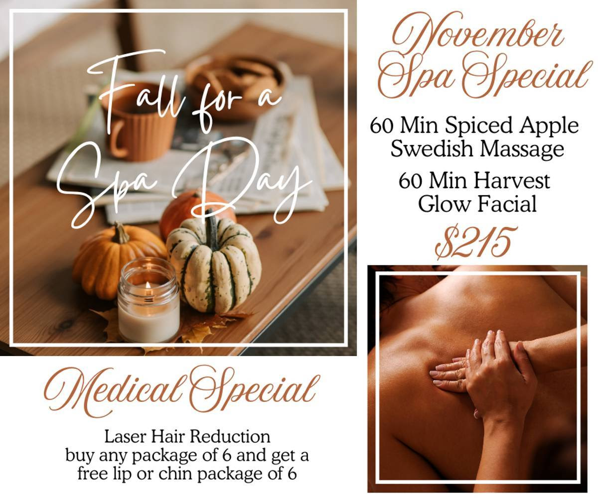 November Purchase your gift certificate today! Purchase Embrace the season of comfort and renewal with our November Spa Special. Call Now To Book